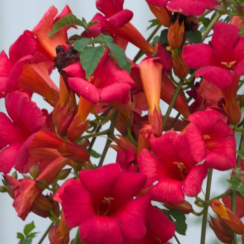 comme les autres bignones, cette grimpante se fixe seule grâce à ses crampons. Grenadine est idéale pour le décor d’un mur ou d’une pergola, à la belle saison.