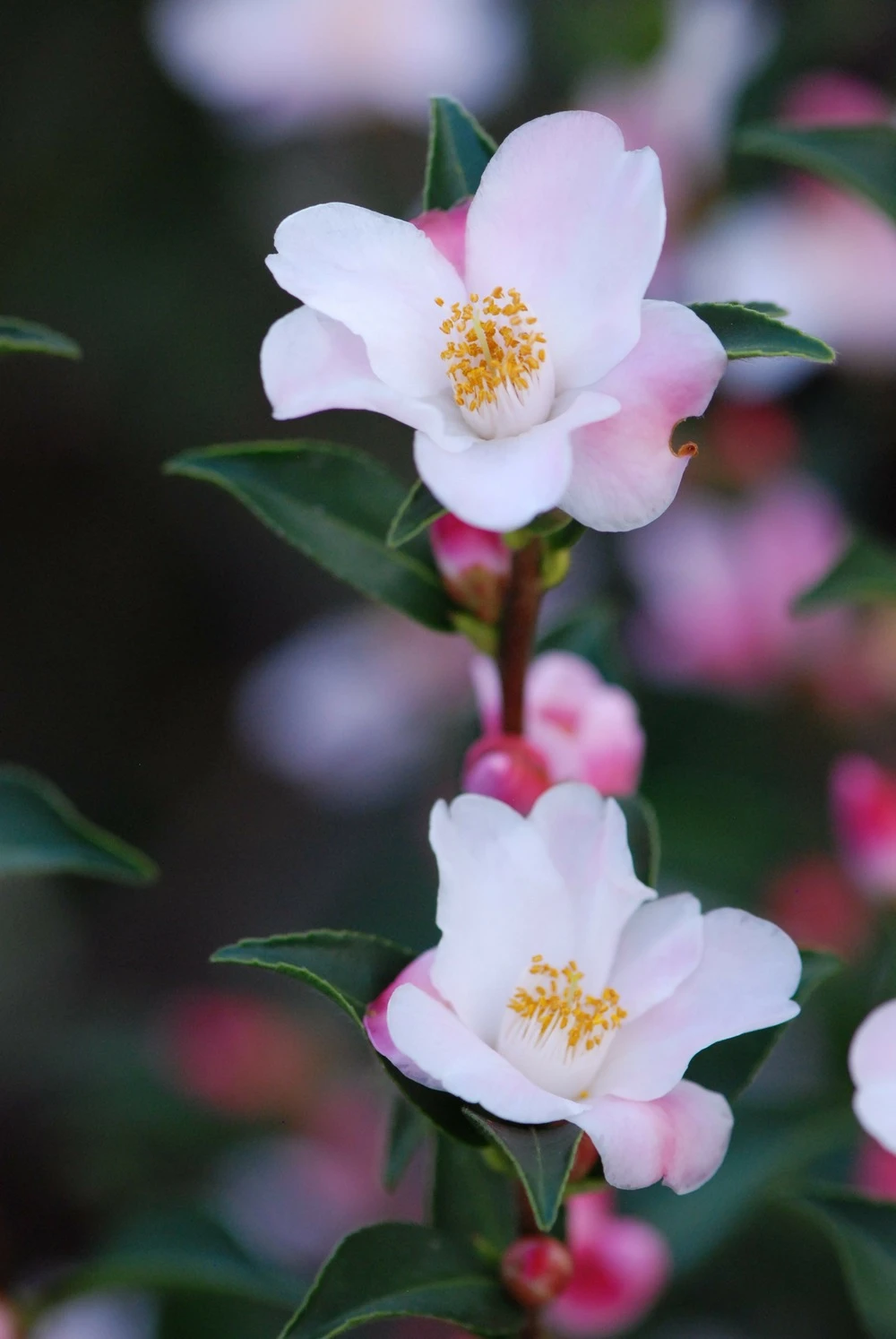 nouvelle variété de camélia au port érigé et compact qui lui donne un aspect très graphique. Ses petites feuilles sont d’abord rouge vif puis d’un lumineux vert foncé sur lequel ressortent de délicats et nombreux boutons floraux roses. Dès le mois de février, il se couvre de petites fleurs blanches. Idéal en petits jardins ou en pot sur votre balcon ou votre terrasse. (c. Pitardii hybride)