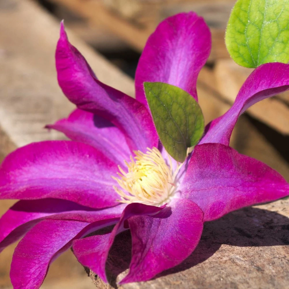 grande fleur originale d’une belle couleur rose clair au centre du sépale, devenant plus foncée sur le bord. La fleur devient mauve à la fin de la saison. production de fruits décoratifs. Elle est issue d’un croisement entre la clématite star of india et la clématite ‘crimson king' », elle est relativement récente (1980) et provient du japon.